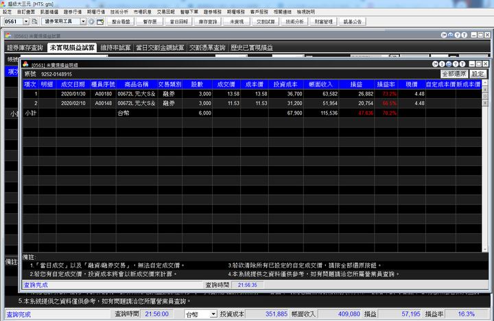 jackchen wrote:這次的籌碼應該都是週四入帳居多。估計明天溢價會再收斂一些。但是我看一倍的ETF也是維持15%溢價,這樣來看兩倍ETF市場似乎能接受30%溢價?就看明天新籌碼灌下去有多少效果了。 我從輕原油跌幅及昨日槓桿比率降至176.52%推算,00672L公布今日淨值約3.24,假設如你所說還溢價3成,那今天市價約4.2,你1單位(500張)獲利約35萬,如果溢價降至23.5%,市價約4.2獲利約25萬(上述計算以今晨收盤價計算,現在價格漲1.62%獲利會再增加)