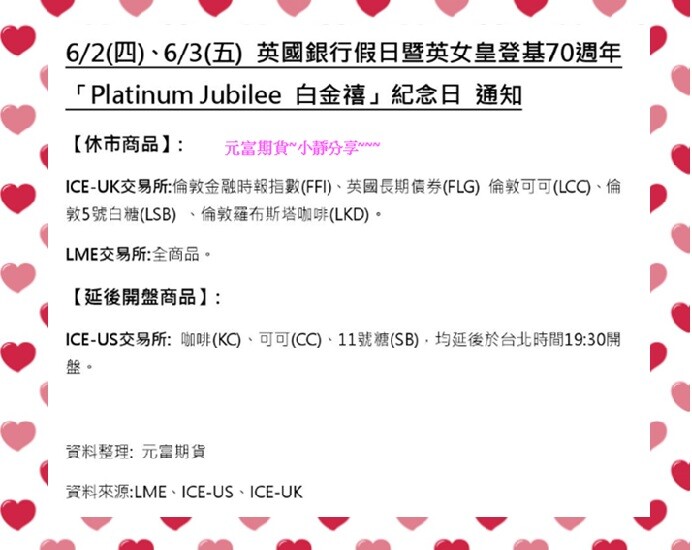 6月2日(四) 、 6月3日(五) 英國銀行假日暨英女皇登基70周年
