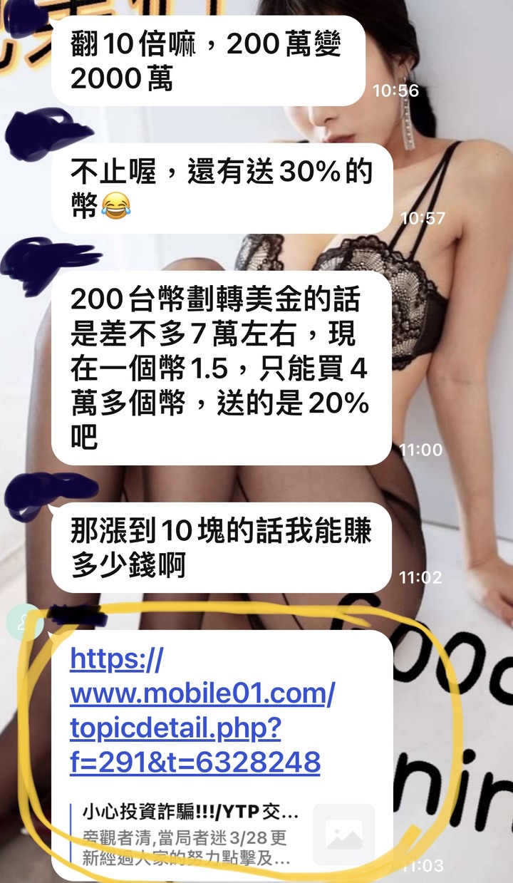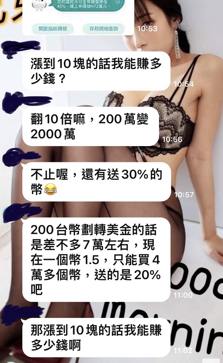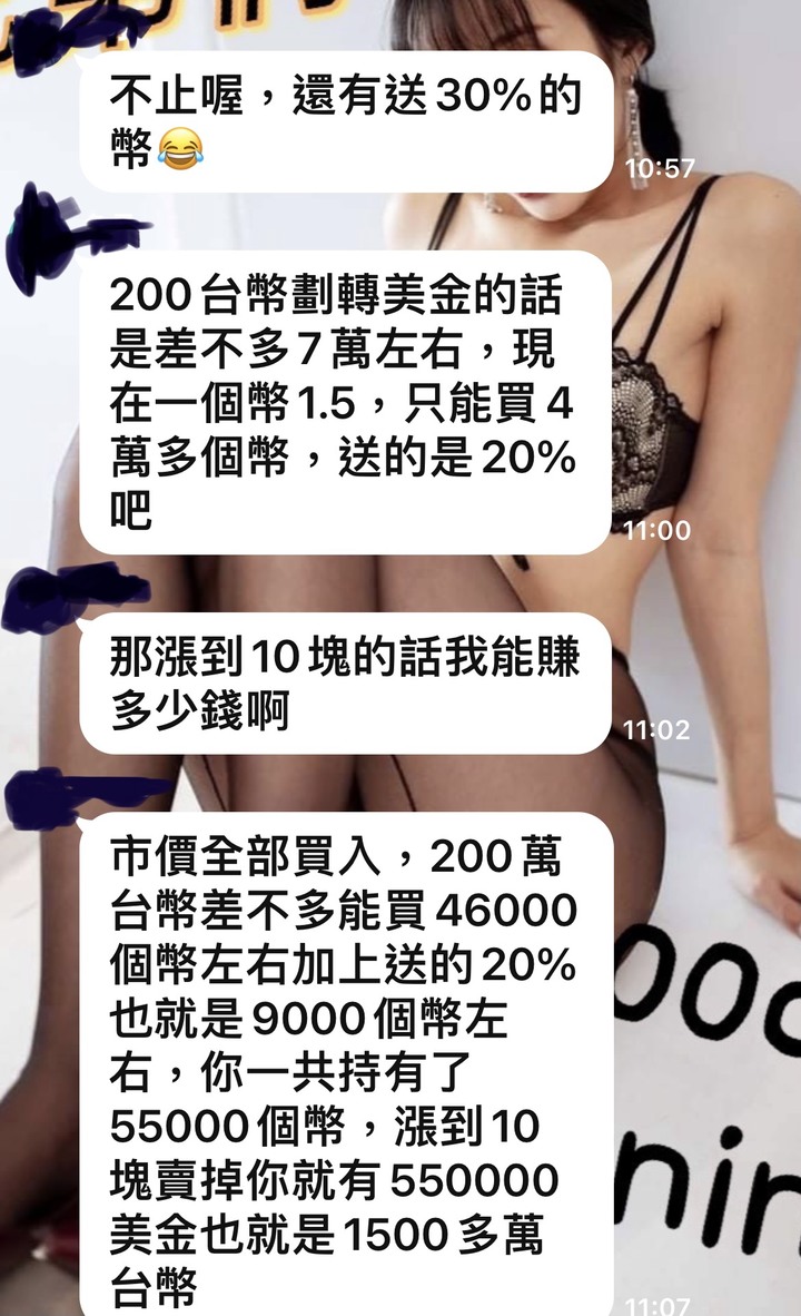 達Mr wrote:https://www(恕刪) 現行合法投資數位貨幣的法令要求非常嚴謹,絕不是隨意上網登入網站、下載APP或匯款即可投資,號稱穩賺不賠、保證獲利的數位貨幣幾乎都是詐騙,民眾若被詐騙或發現這種鼓吹數位貨幣的群組,請向調查局專線提出檢舉(0800-007-007)原文網址: 比特幣爆紅...LINE群組誘買數位貨幣 民眾被詐騙超過3千萬 | ETtoday政治新聞 | ETtoday新聞雲