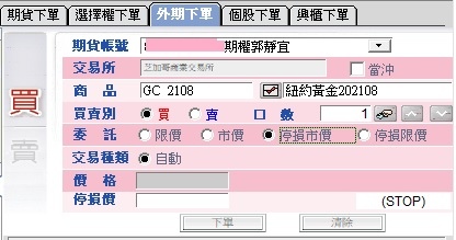 期貨保證金:3,740美元 (大約台幣114,998元)