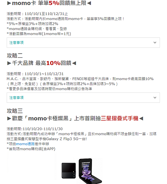 其他還有千大品牌最高10%回饋,另外在Momo購物網內首刷還可以抽三星的摺疊手機喔