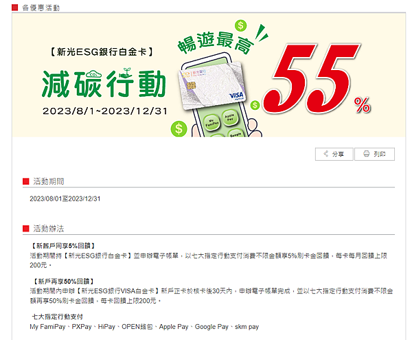 本次要跟大家分享的是由新光銀行推出的ESG銀行信用卡