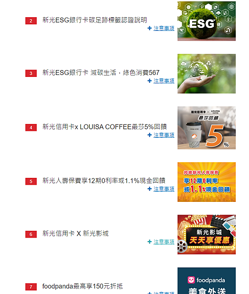 包含:路易莎咖啡LOUISA COFFEE最莎5%回饋、新光人壽保費享12期0利率或1.1%現金回饋、新光影城...等等優惠