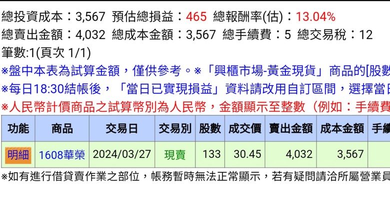 20240408騎車新竹台北返首日收紅新高看1.台股首日收紅上漲很不錯現在夜盤上漲中...2.我4/3跟4/8兩天都在騎車移動減少操作肯定有影響 但只要能選到強勢股…3.真的很誇張 我對我自己說…今天台股總共19檔漲停……手上就有9檔漲停…超扯……漲停名單 1570 2009 2359 2365 3339 3645 4533 5324 6215對這我只能說感謝市場的肯定了...