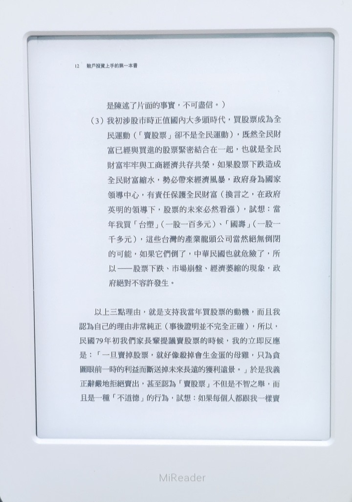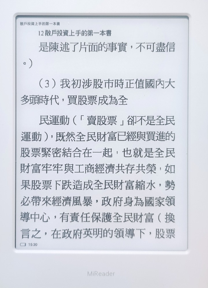 oxox wrote:樓上有分享了。京東下(恕刪) 感謝據說小米多看書準備出二代(希望今年底或明年初有機會 尺寸可以8吋以上)所以先忍住了 (6"對我來說真心偏小.. 加上電子書閱讀器價位都偏高 往後購書也是一筆開銷)最近用平板安裝微信讀書及台灣雲端書庫等試用~先體驗一下用螢幕看書的感覺(微信讀書軟體內建反黑功能及聽書功能 且有多天免費試讀 )ps.會想買電子閱讀器是不想拿一本書 就有人問在看什麼或是書名若有點尷尬 會不太想公眾場合翻閱看電子書則比較無此問題只是用一般顯示器看書 總是不太好(現在人接觸螢幕的時間真的太長)