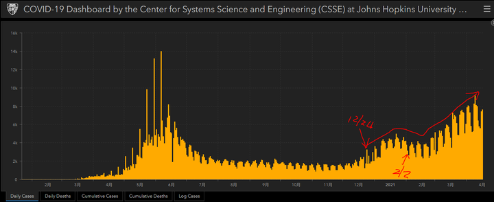 已經1億人注射了疫苗 ,結果染疫的人數還會緩慢增加,好奇怪喔!
