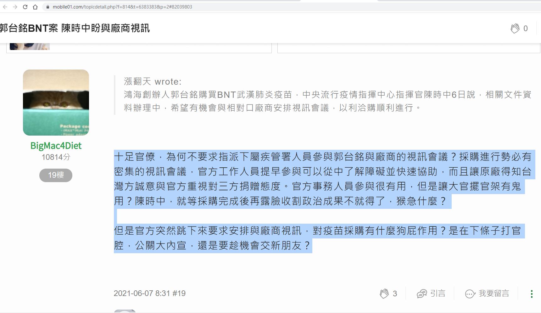 閣下在01造謠的手段,散見各文章中移花接木曲解斷章加鬼扯,屢被揭穿打臉而不悔改,置自身網路代號名聲如穢物而毫不愛惜,真是令我輩台灣人不解且不齒