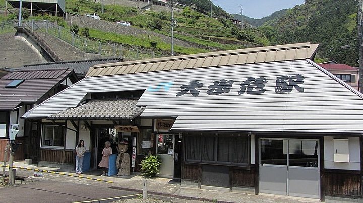 看似有些老舊的大步危車站,其實跟一旁的自然景觀還蠻融合為一的。打算來到祖谷地區遊玩得話不管去哪裡都一定要事先查好列車或是轉乘的公車時間,才不會嚴重影響到預定行乘。從大步危車站到乘船處大約步行20分鐘左右的時間,如果恰巧搭不上公車的話稍微走一下也不會太久。