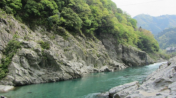 一路往乘船處的方向前進,一邊欣賞著眼前的峽谷景色。隨著陽光照耀下閃閃發光的吉野川相當清澈,也是遠離市區才能看到的難得景色。大步危峽遊覽船來回往返大約30分鐘左右的時間,清澈的溪流及岩岸上的綠意景色讓腦人的炎炎夏日似乎涼爽的不少。